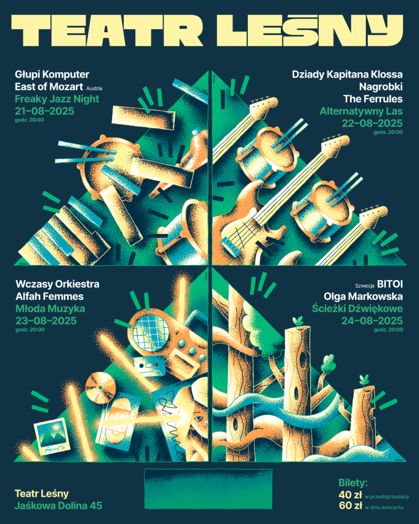 Wszystkie wymienione zespoły, odzwierciedlające kolorystykę Trójmiejskiej Sceny Alternatywnej zobaczycie właśnie podczas koncertów w ramach Alternatywnego Lasu w Teatrze Leśnym (INFO, EVENT, BILETY) już w piątek 22 sierpnia. Serdecznie polecam.